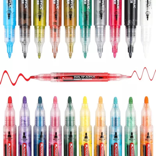 Marcadores Acrílicos Doble Punta Mobee 20 Colores