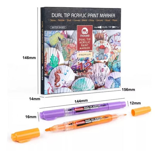 Marcadores Acrílicos Doble Punta Mobee 12 Colores