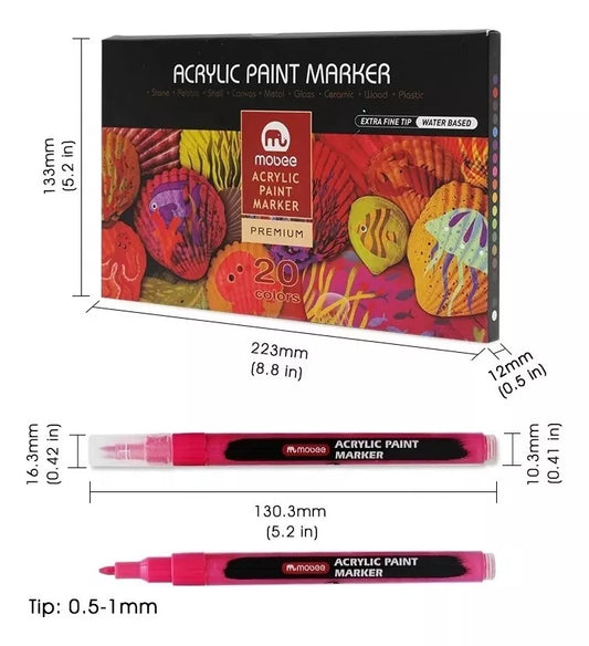 Marcadores Acrílicos Punta Fina Mobee 20 Colores