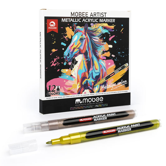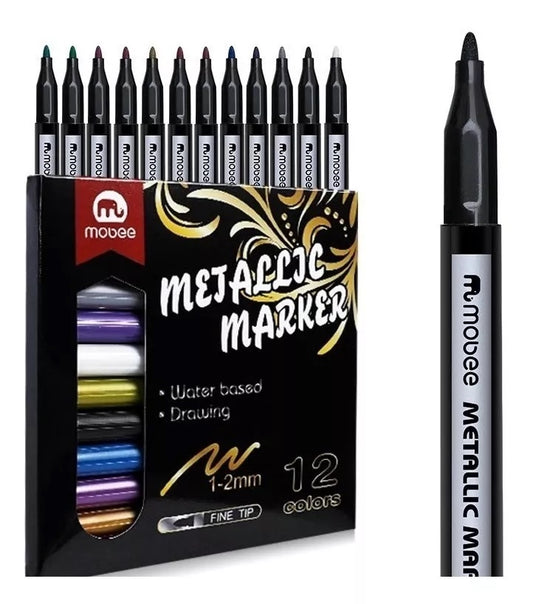 Marcadores Acrílicos Mobee Metálicos Punta Fina 12 Colores