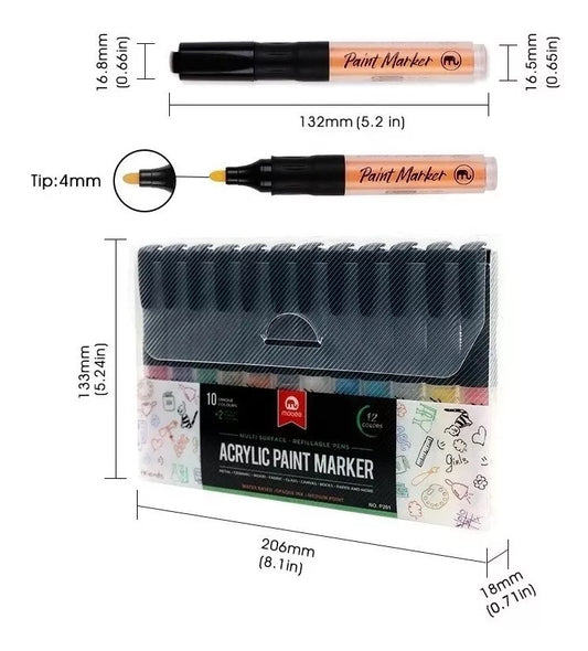 Marcadores Acrílicos 12 Colores + 12 Recargas + 24 Puntas